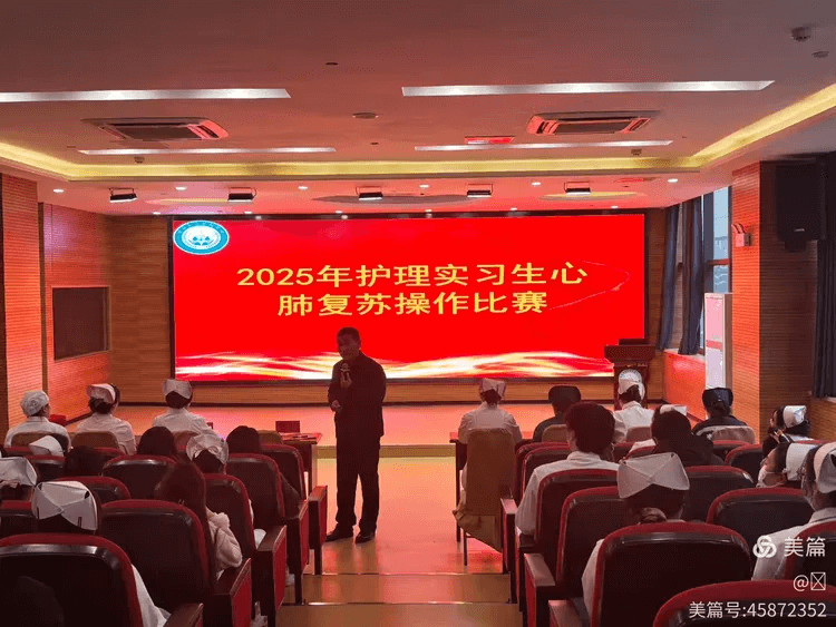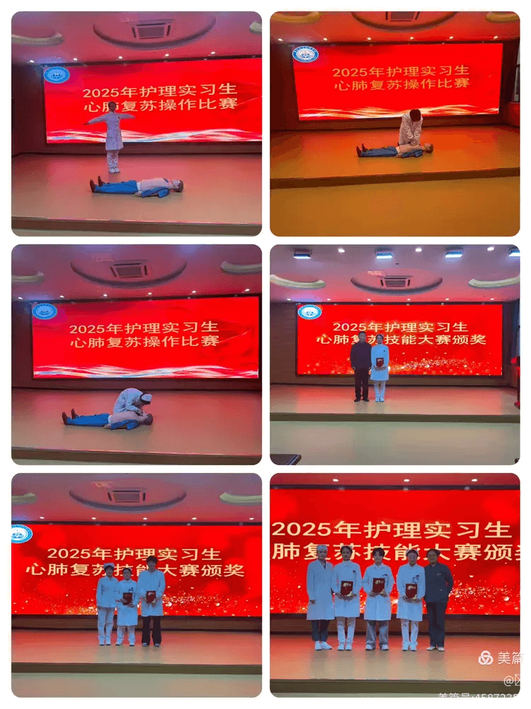 毕业典礼伊始,一场紧张激烈的心肺复苏(CPR)技能比赛,为现场注入了专业的活力。赛场上,参赛实习生们迅速进入应急状态,判断意识、大声呼救、摆放体位、精准按压、有效通气……每一个动作规范流畅、沉稳有力。评委团则从操作流程、技术精准度、应急反应及人文素养等多维度进行严格打分,最终评出一、二、三等奖。