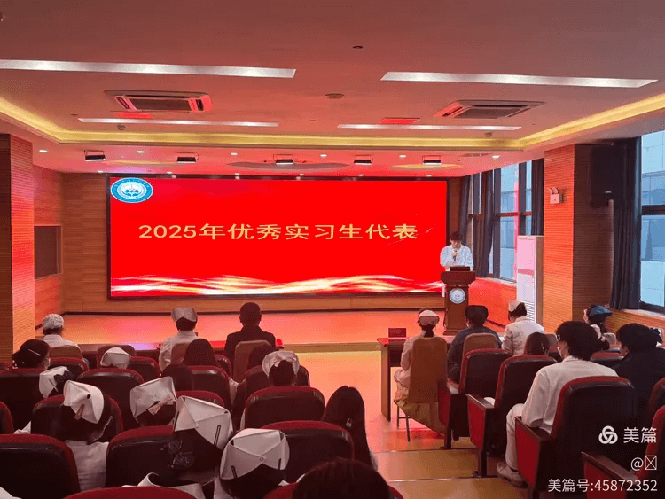 优秀护理实习生代表王朗走上讲台,分享了他8个月来的心路历程。他深情感谢医院提供的优质实践平台,感谢带教老师们“手把手教学、心贴心指导”的无私付出。他表示,实习期间不仅学会了专业技能,更懂得了护理工作的责任与意义。