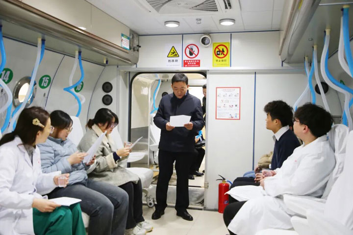 作为首批体验人员,医院职工代表在完成血压等前置检查后,由安新书记详细介绍了高压氧使用的注意事项,并亲身体验了这一新型治疗设备。体验过程分为加压、吸氧、减压三个阶段,全程历时1小时45分钟。首批体验人员在治疗结束后纷纷反馈:整个治疗过程能够感受到气压增减带来的变化,吸氧后精神状态明显改善,疲惫感有效缓解,整体状态良好。院领导表示,组织职工先行体验,一方面是检验设备的运行情况,另一方面也是为了让一线医务人员切身感受治疗效果,为今后向患者提供更精准的诊疗服务做好准备。